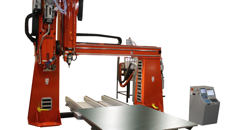 与标准LSAM系统不同,标准LSAM系统具有在大型固定工作台上运行的双门架,而MT(代表“移动工作台”)具有在移动工作台上安装的单个固定门架。这种配置可提供10x5英尺的桌子或1010英尺的桌子,具有许多明显的优势,其中重要的是价格大大降低。