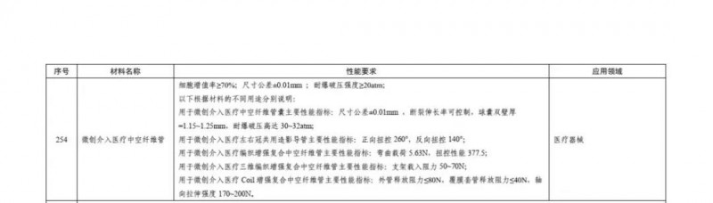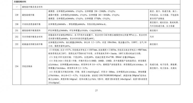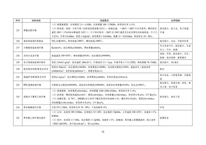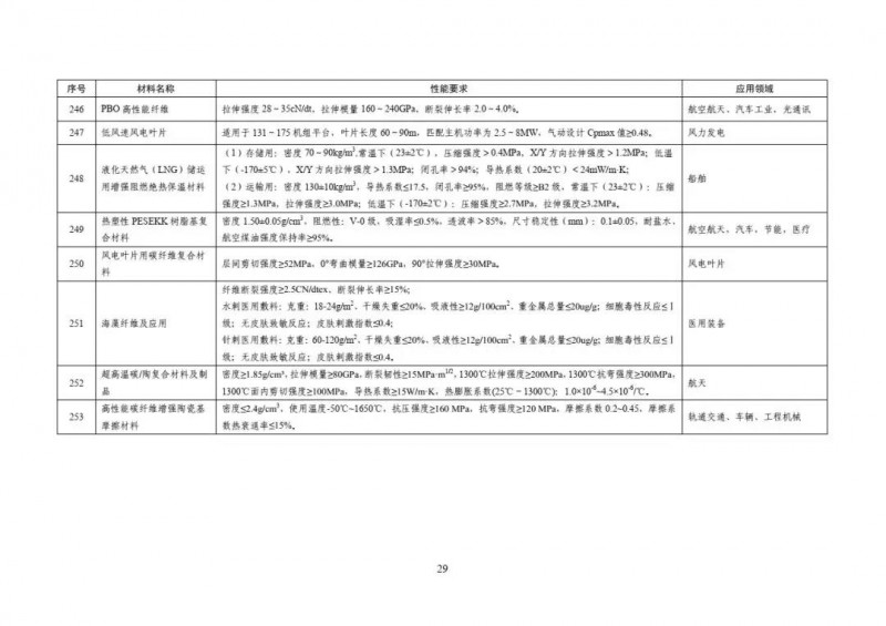 工信部·重点新材料批次应用示范指导目录(2019年版)高性能纤维及复合材料部分