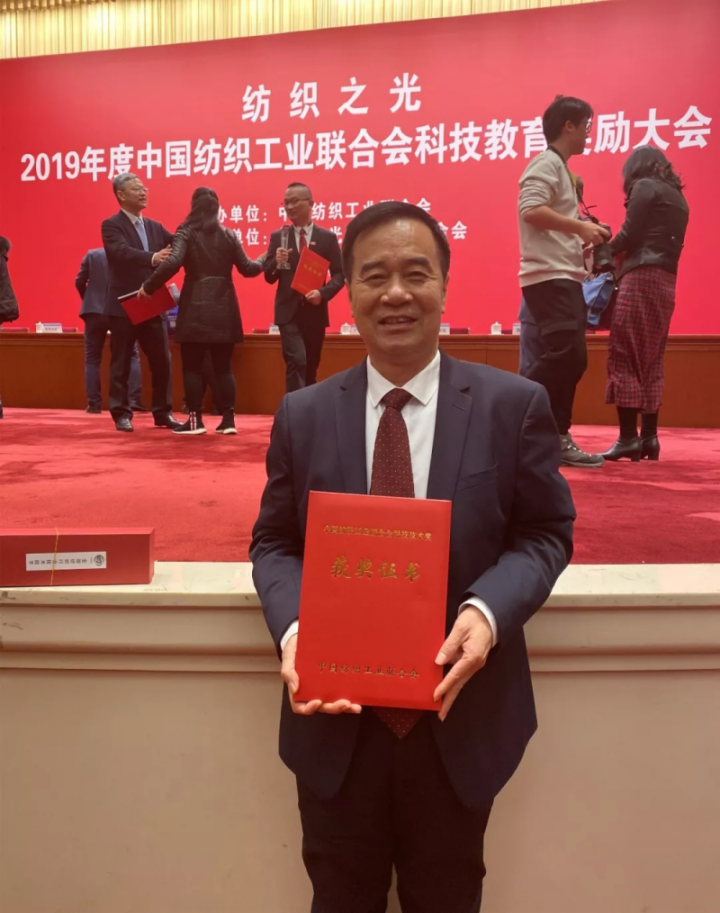 12月6日,“纺织之光”2019年度纺织工业联合会科技教育奖励大会在北京大会堂举行。大会表彰为我国纺织科技和教育事业发展做出突出贡献的科技、教育工作者和杰出人才。此次大会我公司董事长张国良荣获“纺织工业联合会科学技术奖特别贡献奖(桑麻学者)”,以张国良董事长为发明人的“一种适用于干喷湿纺的高粘度纺丝原液的制备方法”荣获 “2019年纺织行业金奖”。