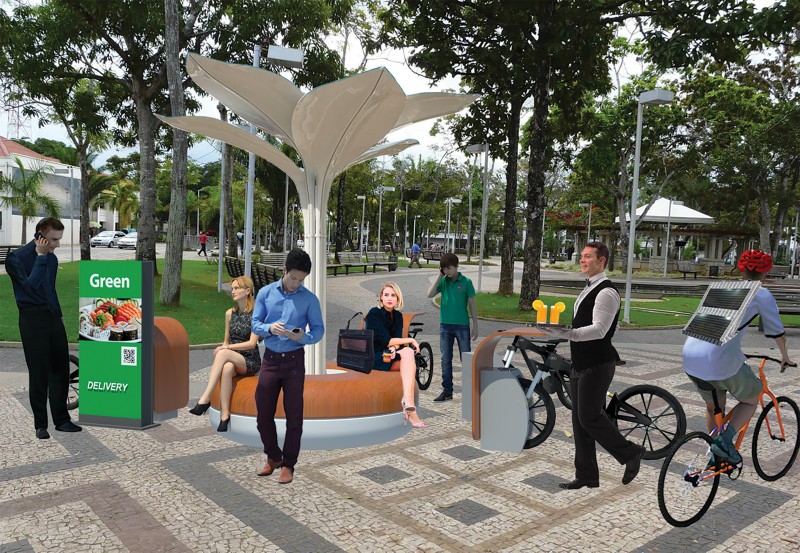 从概念上讲,太阳能树比现有产品更先进。这是一种具有连通性(IoT)的智能电站,可实现循环经济和可再生能源的生产。太阳树致力于提高人们对可持续发展的意识,重点关注经济,社会和环境发展。该项目使用可循环再利用的原材料,由聚合物和纳米技术制成的先进的柔性太阳能电池板(无需使用硅)以及效率比传统材料高出85%的LED条纹。这些灯的能耗降低了10倍,使用寿命延长了10到15倍,并且不会发出紫外线。所有这些都可以节省成本并大大减少碳排放量。