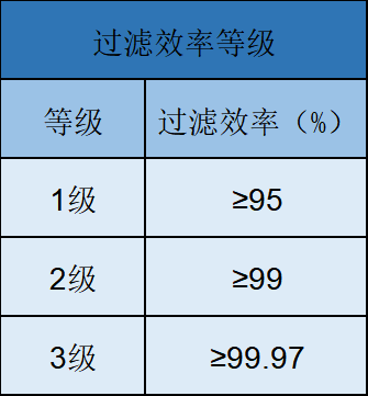 前面提到,M层越细,就越能阻挡细菌等微小颗粒的进入,比如N95,就是指在正常情况下,能阻挡95%的微小颗粒(0.3微米),按照医用防护口罩标准GB/T 19083要求,在气体流量为85L/min情况下,口罩对非油性颗粒过滤效率符合下表要求:>
