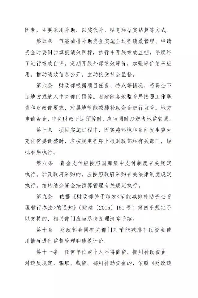 为进一步规范资金使用管理,对《节能减排补助资金管理暂行办法》(财建〔2015〕161号)作出修改: