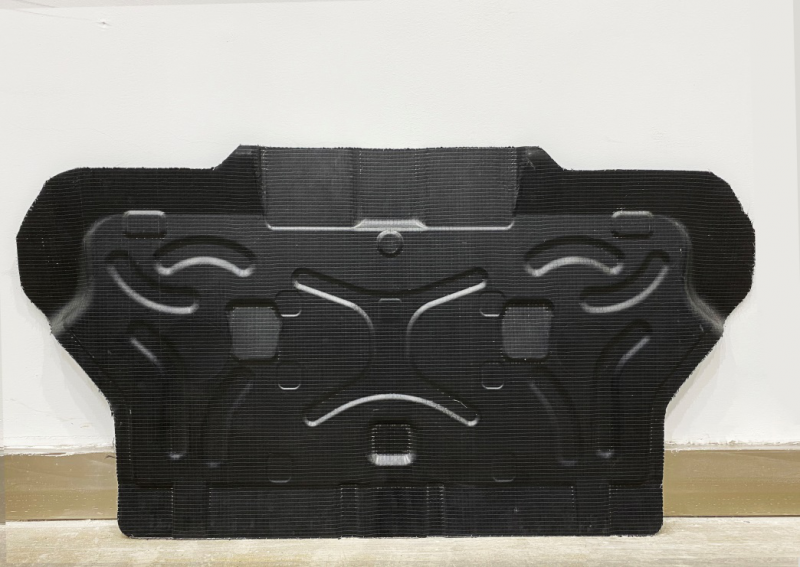 碳纤维汽车零部件作为汽车轻量化的行业趋势,也是华阳新材料致力的行业领域,碳纤维复合材料以其优异的性能,一直以来受到汽车行业的青睐,随着我国碳纤维生产技术的不断突破,其成本因素已逐步不再困扰碳纤维复合材料在汽车领域的发展,因汽车行业大批量生产的特性,也促使材料的制备逐步走向低成本化和工业化,对于碳纤维复合材料的工业化稳定连续生产一直是行业关注的焦点,也是碳纤维复合材料应用于汽车轻量化领域的重中之重。因此能够满足汽车制品产量和质量的HP-RTM工艺以及湿法模压(WCM)工艺得到了大量的应用,而本次参展的样件,就是吉林省华阳新材料研发有限公司创的基于可同时满足HP-RTM和WCM两种工艺的模具制备的样件。