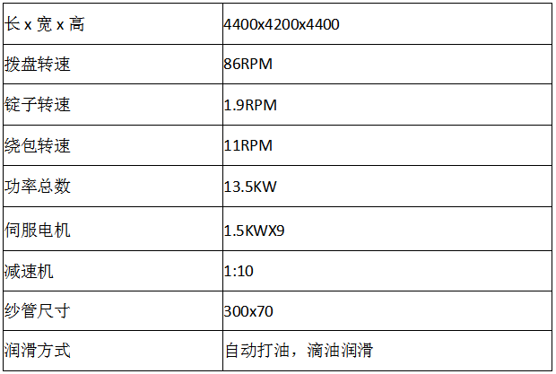 180锭编织机主要技术参数