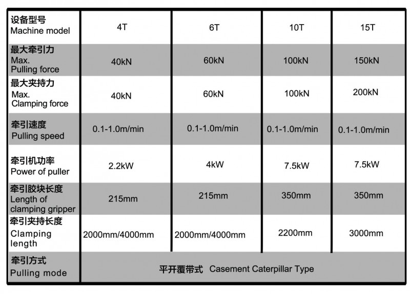 1)针对大断面复合材料拉挤型材设计,牵引力强劲,运行平稳可靠