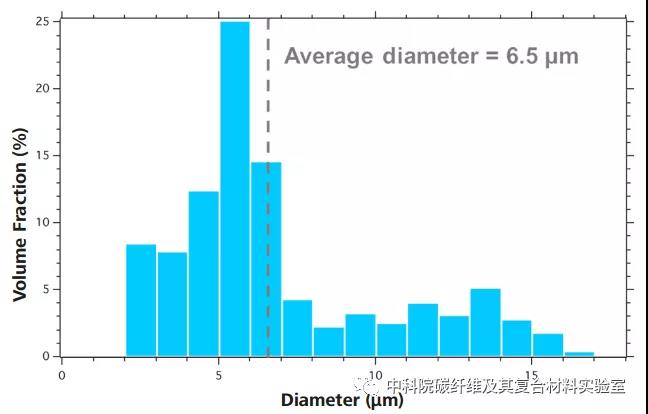 在进行其他成像之前,将数字二值化技术应用于[可疑的]碳纤维区域,以了解纤维直径分布。初始数据处理在ORS Dragon fly Pro中进行,碳纤维分析在Math 2 Market GeoDict中进行,测试如图8所示,平均纤维直径为6.5 µm。