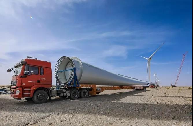 长途运输中,叶片、机舱、轮毂和塔筒被戏称为“四超”(超长、超重、超宽、超高),特别是当前风电机组叶片具有长柔性特点,如何实现安全无损远程运输成为行业公认的技术难点。