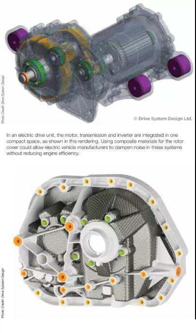 英国的一些研究人员认为,复合材料可以提供解决方案。复合材料中心(NCC)与工业界合作,推动复合材料设计和制造方面的创新,目前正与工程咨询公司drive System design合作,开展一个为期12个月的项目,研究复合材料在电动汽车集成电动驱动单元(EDU)中的应用。目的是在不影响其噪声、振动和粗糙度(NVH)特性的情况下提高EDU的效率。