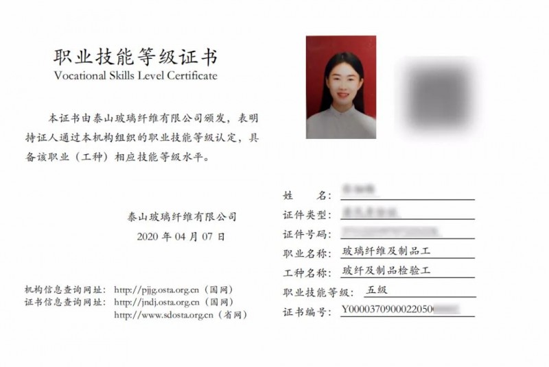 全市批企业自主评价职业技能等级证书在泰山玻纤产生