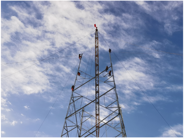 条清洁能源外送特高压通道完成直流输电线路工程铁塔组立