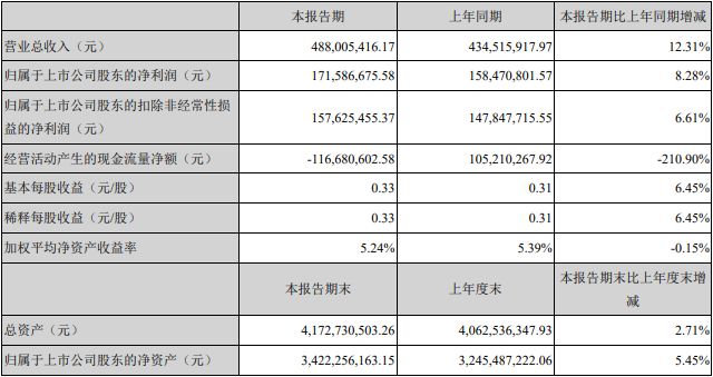 季度经营活动产生的现金流量净额为-116,680,602.58元,上年同期105,210,267.92元;基本每股收益为0.33元/股。