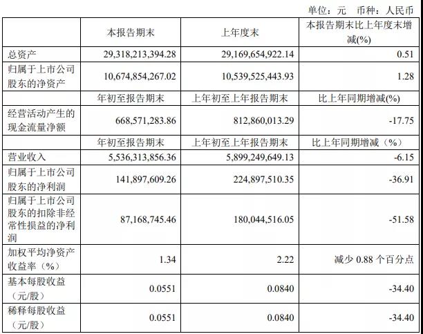 金发科技:一季度实现营收55.36亿元,同比下降6.15%;实现归母净利润1.42亿元,同比下下降36.91%。