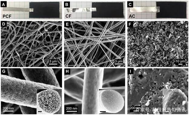 为了设计用于CDI的材料,该团队研究了三种碳材料,包括具有大离子可接触表面积的块状共聚物基多孔碳纤维、工业PAN基碳纤维和活性炭。纤维状碳和相互连接的介孔允许电子和离子的连续有效运输,同时降低了细胞内脱盐的内阻,提高了脱盐率。相比之下,其他材料对离子的电吸附表面积有限,脱盐率下降。然后,研究小组将这三种材料——多孔碳纤维、PAN基碳纤维和活性炭粘附在镀锡铜带上,并将其作为CDI细胞的电极。通过扫描电子显微镜(SEM)观察发现,这三种材料有明显的外观区别。根据初步结果,他们预计多孔碳纤维表现出高的脱盐率。