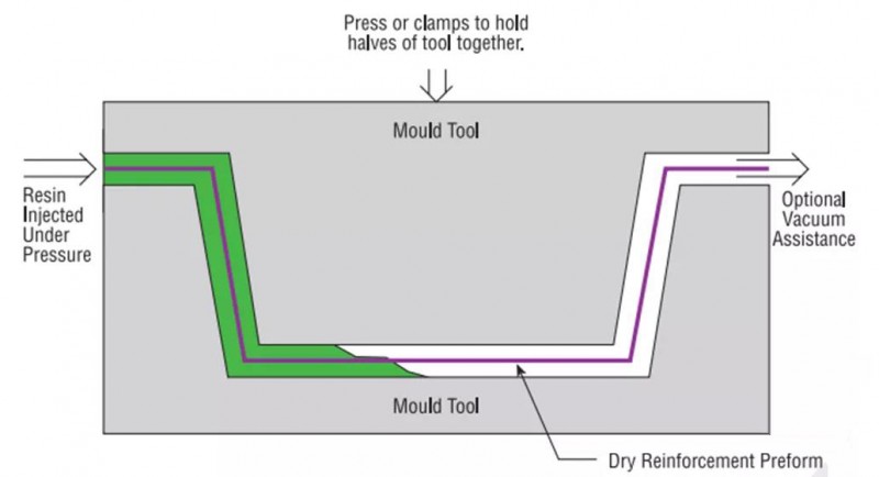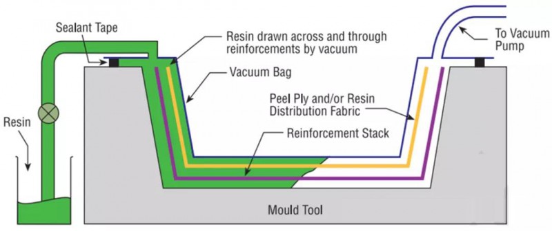 树脂通常可以采用环氧树脂、聚酯树脂、乙烯基酯和酚醛树脂,但双马来酰亚胺等高温树脂也可在较高的工艺温度下使用。纤维类型不限,缝制的材料在此过程中效果很好,因为间隙允许快速进行树脂运输。一些特别开发的织物可以帮助树脂流动。