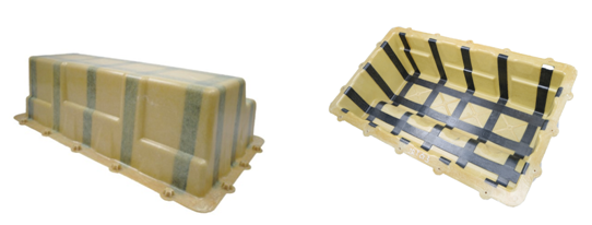 Virtual Process Chain 图片来源:KIT-FAST 作为该项目演示部件的电池包,由ACTC研发团队自主研发并使用SMC模压& PCM混合成型工艺试制而成,950 x 570 x 280 mm的尺寸条件下重量不到5KG。产品通过复杂和精密的模具设计实现了SMC模压和PCM模压混合成型,并内嵌了金属件,无需额外胶结金属件,提升了连接部位的强度。这种新型的工艺为新的产品设计提供了思路,也将在“VirtualSMC”项目中,为高效数字化仿真设计的验证提供支撑。