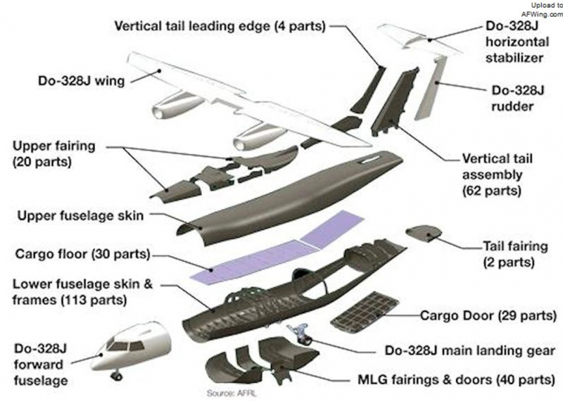 洛马的设计以Do-328客机为基础,浅色区域结构沿用自原机体,深色区域结构为新制造