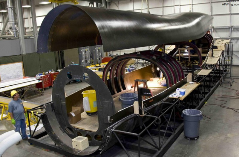 新机身长19.8米,机身顶部和机腹蒙皮、保形框、地板支撑结构、货舱门、压力隔框、整流罩都使用MTM-45非热压炉复合材料。之前复合材料的标准树脂都需要在热压炉内以高压和177摄氏度的高温下才能固化,需要坚硬的夹具配合,而且零件尺寸也受热压炉大小所限制。而MTM-45只需真空压力,并加温到摄氏71到93度就能固化,沿零件四周很容易安装加温设备,零件尺寸不会受到热压炉大小的限制。