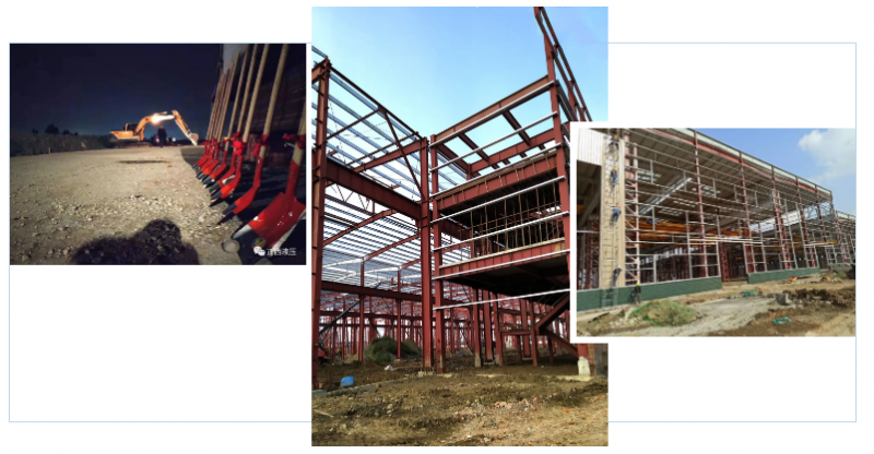 2019年3月-正西新厂项目正式开工,项目启动后火速施工,经过紧锣密鼓地交地、打围、平场、文堪、地勘、基础施工等工作,克服各项困难,现项目有条不紊的如期进行,钢构搭建已基本完工。