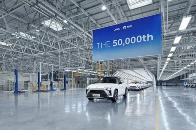 蔚来与江淮在2016年4月6日签订战略合作框架协议,开创全新的制造合作模式。位于合肥经济开发区的江淮蔚来先进制造基地于同年10月23日正式动工。工厂自2018年5月台蔚来ES8量产下线至第50000台整车下线,历时两年又两个月。