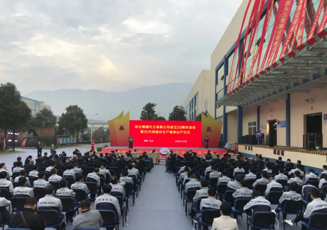 11月16日,巨石集团九江有限公司成立20周年暨35万吨玻纤生产基地达产仪式胜利举行。九江市政府、九江经开区相关领导,巨石高管、股东代表、客户和供应商代表,见证巨石九江发展的退休干部代表、职工代表以及新闻媒体共计200多人参加仪式。