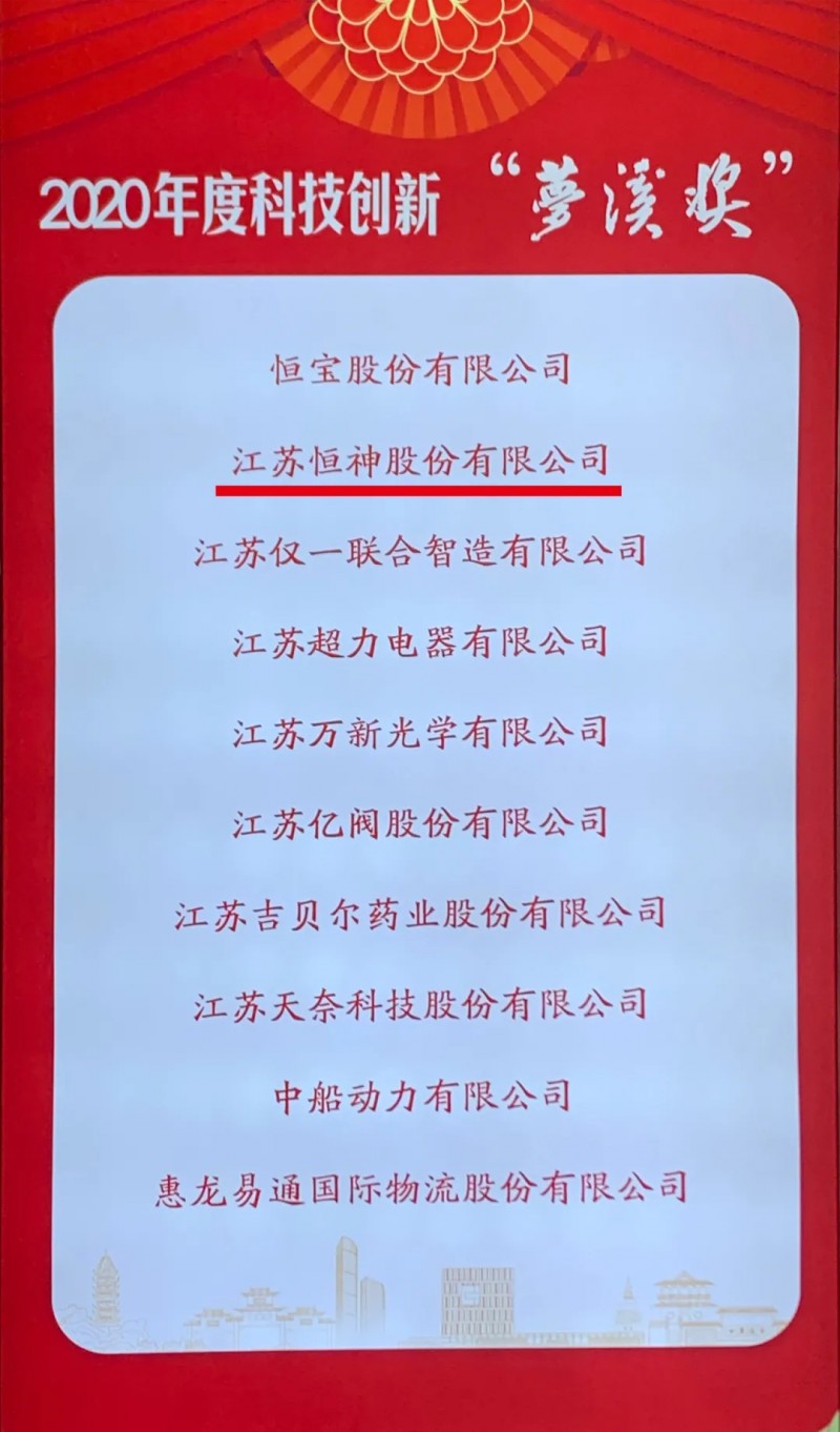 恒神股份再次荣获2020年度镇江市科技创新“梦溪奖”