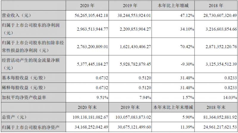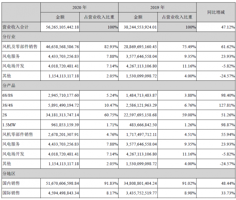 3月26日,金风科技发布2020年年度报告,报告显示:金风科技2020年全年实现营业收入562.65亿元,同比增长47.12%;归属于上市公司股东的净利润29.64亿元,同比增长34.10%。