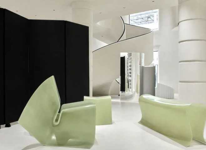 为了体现“玩弄时间于无形”的这一理念,ofD还挑选了视觉上令人惊叹的Gufram沙发、Thomas&Vines的黑色天鹅绒镜子,以及Olivier Gregoire看似可塑的椅子,在新建的空间里,通过与时间交朋友超越了时尚。
