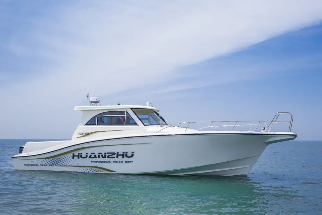 大连环珠玻璃钢船艇制造有限公司所推出的SG-40钓鱼艇船长12m,宽3.370m,燃油仓容1300L,定员10人,高航速37节。