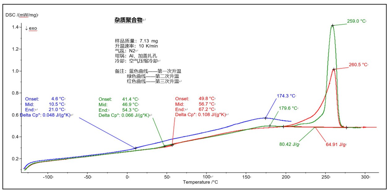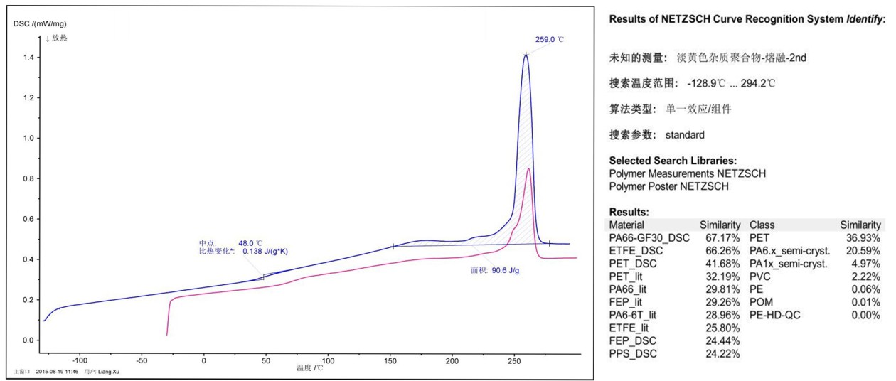 测试目标:客户猜想该杂质可能是 PC 或 PA66。需通过 DSC 检测进行推断。