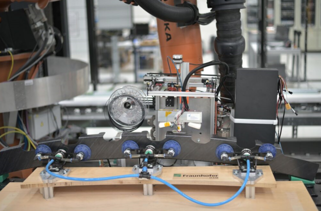 此外,施塔德弗劳恩霍夫制造技术和先进材料研究所IFAM的自动化和生产技术专家在OSFIT子项目“机器人辅助的自适应在线垫片工艺”中开发了这种整体框架的自动化预装配工艺。他们的工作导致了虚拟间隙测量和机器人引导的间隙填充物(垫片)作为连接技术的自动3D打印应用的实现。为此,IVW开发了一种3D打印机。