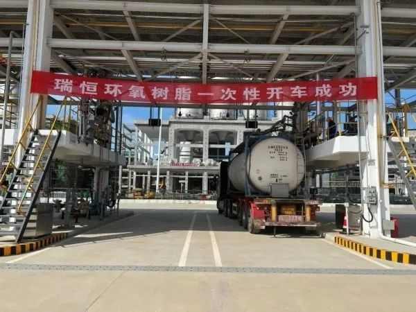 “随着基础树脂装置预溶釜A投料滴碱,现场机泵、设备有条不紊地投入运行,项目有序进入调试阶段。”瑞恒相关负责人介绍,4天后,无色透明的环氧树脂液体通过管道从生产装置流入环氧树脂成品罐。这标志着中化国际瑞恒公司年产18万吨环氧树脂项目顺利打通全流程、装置一次开车成功。