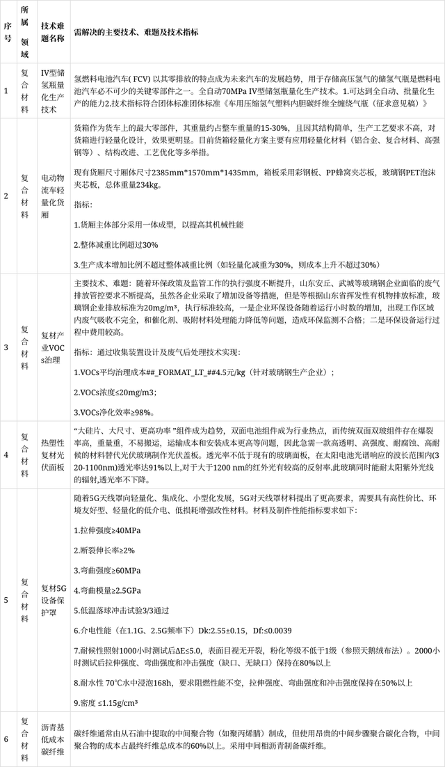 现公布山东省创新创业共同体复合材料领域技术需求榜单: