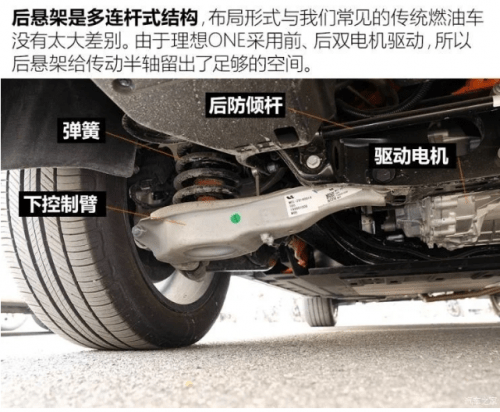 理想ONE的车身材料算是比较保守,相反在底盘方面却有着非常积极的新材料尝试,也就是我们今天要聊的重点——工程塑料打造的悬架下控制臂。在聊这个话题前,我们先大致了解一下理想ONE的悬架。
