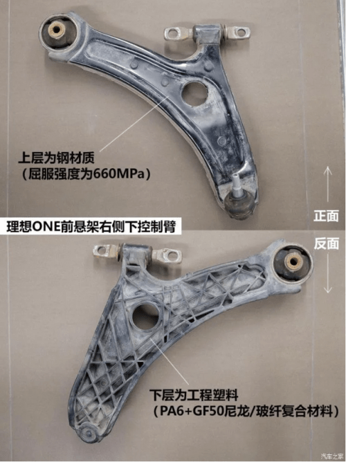 作为一家新创车企,又是打造了一款不常见的增程电动汽车,理想ONE上市后受到了行业内很多人的关注。大家关心的焦点大多是那套增程式电动的工作逻辑、续航里程问题等等,而忽视了基本的底盘方面——理想ONE的下控制臂竟然使用了工程塑料!