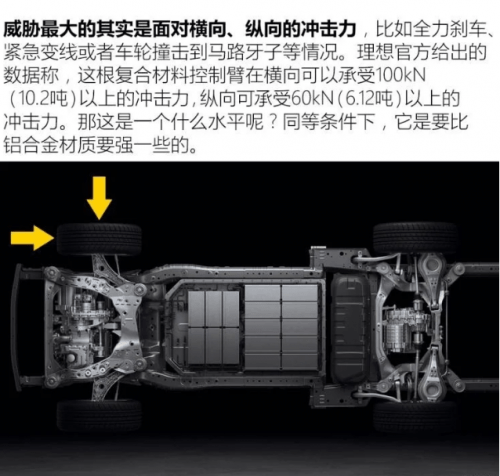 有人说特斯拉是将复合材料用于上叉臂,而理想ONE用于下控制臂,从受力情况来说麦弗逊式结构的下控制臂“担子”更重,这不会带来隐患吗?