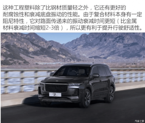 一听到“塑料悬架”,相信多数人还是会对此保持怀疑,因为在普遍的认知里,塑料材质与金属材质是很难相提并论的。这种工程塑料真的有靠谱吗?尤其是对于空载整备质量就达到2.3吨的理想ONE来说。