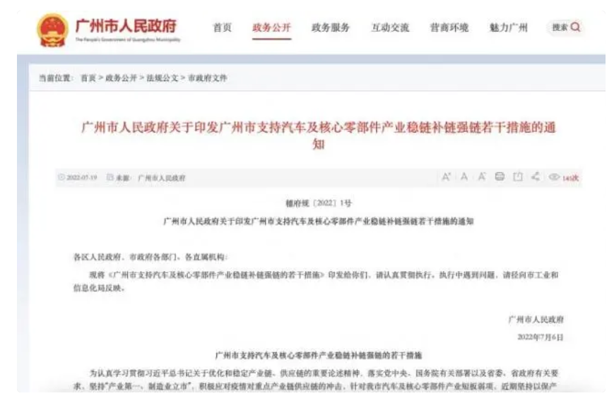【汽车】鼓励车企实施供应商AB近地化策略等:广州出台多条举措力保汽车供应链安全