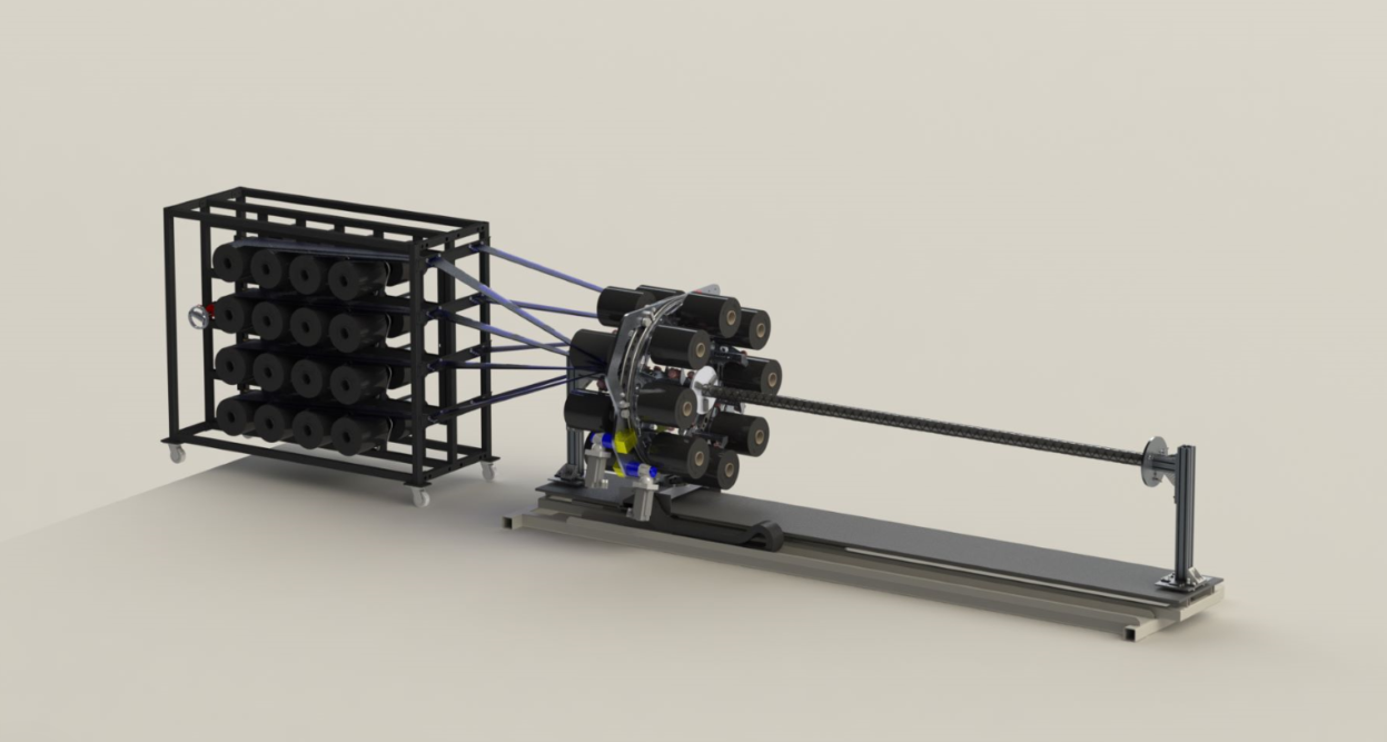使用MAW和3D卷绕机使零度缠绕成为可能,因为轴向纤维由收卷机构固定到位。纤维从一系列(两个或三个)旋转环进入工艺,这些旋转环上装有纤维线轴,这些线轴围绕静态心轴来回移动,在它们走的时候缠绕。此外,可以在工艺开始时加入纤维放卷架,以增加可以一次性进料和铺设的纤维量,从而提高生产效率。