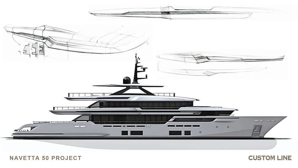 法拉帝集团旗下品牌定制法拉帝为其天梭(Navetta )船队推出了一款新旗舰,—— 49.9 米的天梭 50。这为定制法拉帝开启了新的篇章:自1996年以来,这家造船厂一直使用玻璃纤维建造游艇。