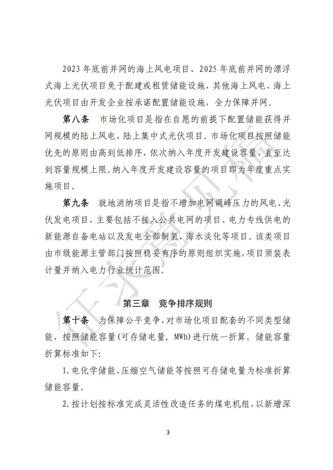 3)2023年底前并网的海上风电项目、2025年底前并网的漂浮式海上光伏项目免于配建或租赁储能设施,其他海上风电、海上光伏项目由开发企业按承诺配置储能设施,全力保障并网。