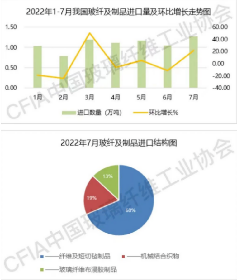 短期内,俄乌战争及通胀难以缓解,经济增长乏力,市场消费意愿降低,玻璃纤维及制品出口量环比六、七月持续下降,外需市场持续回落;进口量环比较六月转降为升,个别内需细分市场有望走出低迷。2022年下半年,随着国际局势愈加复杂,以及秋冬新冠疫情反复,加之面临消减库存、消化新增产能的压力,行业应做好充分的思想准备积极应对,并根据市场需求变化进一步优化产品结构,充分挖掘国内市场潜力。