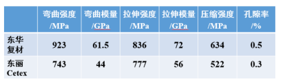 东华复材产化连续碳纤维增强聚苯硫醚板材与东丽旗下Toray同类产品性能对比