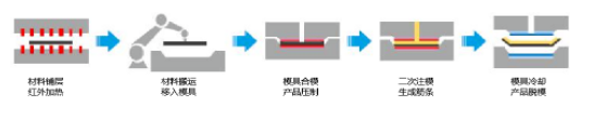 为攻克以上技术难关,车身攻关团队应用了碳纤维新型加工工艺——热塑模压+二次注模:即使用与热塑材料混编的碳毡,通过模压生产出结构件,也可以与注塑工艺结合用于一些内饰件的成型;配合模内加热系统,可实现非常好的外观质量,且与背后注塑出的卡扣结合牢靠,满足了零件强度刚度的需求。