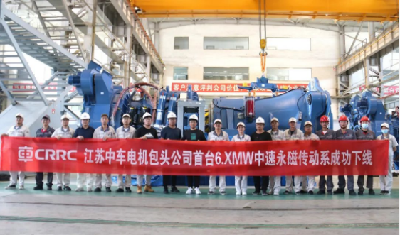 中车株洲电机江苏公司6.XMW陆上中速永磁传动系成功下线