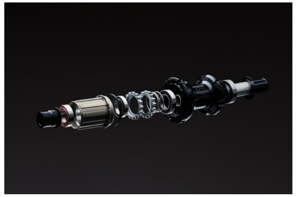 Essentia 40 的花鼓采用了新的“棘轮”齿冠系统,使其能够承受在练习砾石时遇到的更高水平的扭矩,并保证出色的可靠性和耐用性。这种新型棘轮机构的设计基于 36 个啮合角为 10 度的齿,为骑手提供了佳的动力分配。同样,特大号轴承也专门用于盘式制动器和全路面使用。