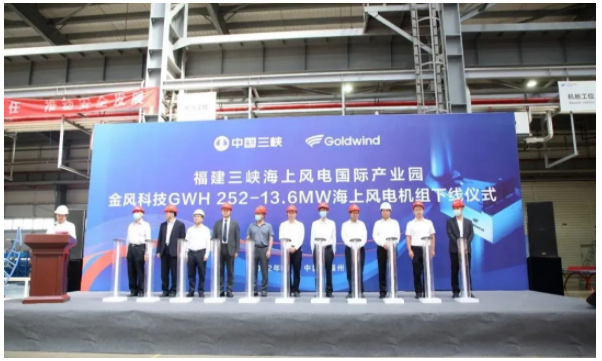 10月13日,金风科技GWH252-13.6MW机组在福建省福清市福建三峡海上风电国际产业园成功下线,福建省工信厅党组成员、总工程师施惠财,福建省工信厅装备处处长杨鹏飞,福州市政府办公厅副主任黄依佺,三峡福建能投公司执行董事、党委书记雷增卷,金风科技总工程师翟恩地等领导出席仪式。