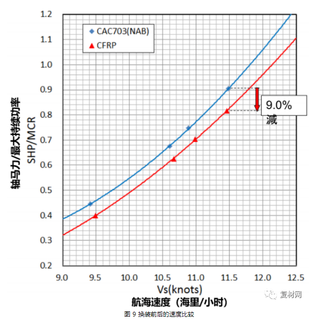 与传统铝青铜螺旋桨相比,CFRP 所需的功率减少了 9%,相信随着在商船上逐步推广使用后,能更好的提高燃料经济性和运营效率。