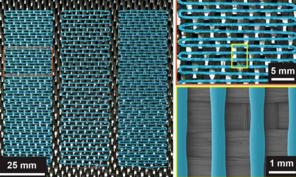 层压复合材料由纤维增强层制成,例如将玻璃和碳纤维粘合在一起。当将这些层粘合在一起的“胶水”开始从增强材料上剥离或分层时,通常会发生损坏。研究小组通过在增强材料上3D打印热塑性愈合剂图案来解决这个问题。在复合材料中嵌入了薄“加热器”层。当施加电流时,加热器层升温,从而熔化愈合剂,而该愈合剂会流入复合材料内的裂缝或微裂缝中并对其进行修复。