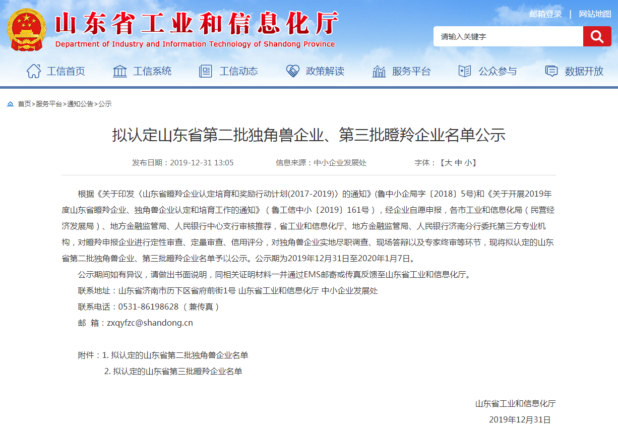 近日,山东省工信厅公示了2019年度第三批“瞪羚企业”名单,诺伯特智能装备(山东)有限公司成功入选。