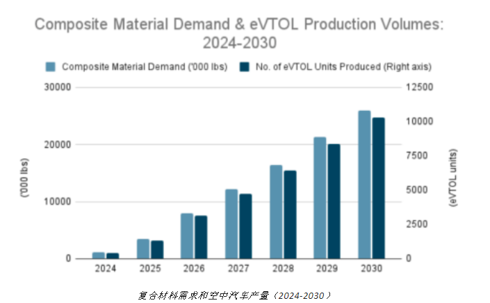 2030年,空中汽车行业对复合材料的需求估计将达到6.73亿美元,而2024年只有3620万美元。东丽已经抓住了这个机会,因为它已经与Joby Aviation和Lilium合作,这两家的企业在认证竞赛中也于其他企业。空中汽车行业不仅将为复合材料行业创造了机遇,也将为整个价值链上的其他几个参与者创造了机会。